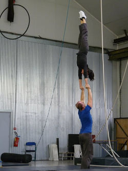 Growing up in the Netherlands Tiko Venne has been doing circus starting at the age of 8 when his parents introduced him to acrobatics. He graduated from circus school in Brussels in 2001 and has been touring in Europe with various different shows of his Compagnie Rêve2 for the passed 14 years. He specializes in partner acrobatics and hand balancing and experiments in combining his specialties with contact inprovisation.